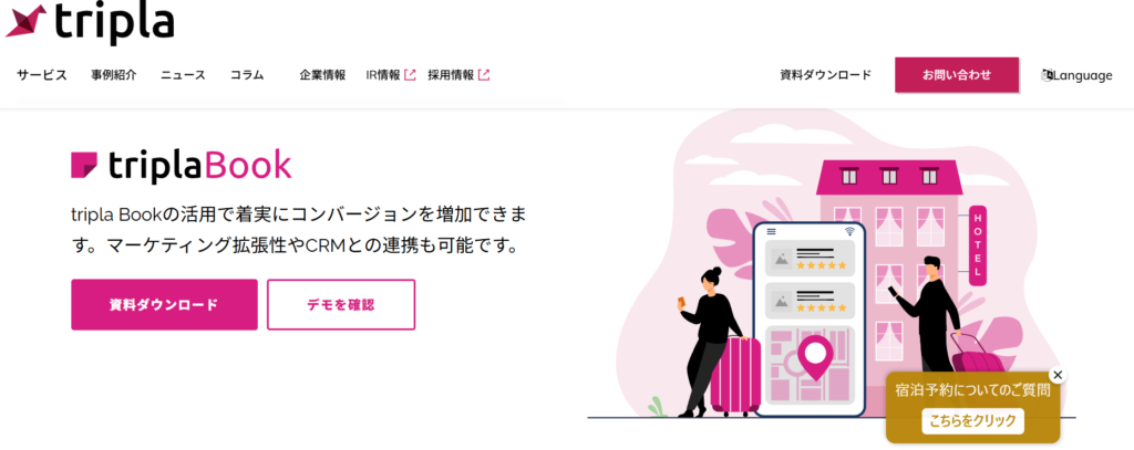 宿泊予約エンジン「tripla book」との提携が可能です。