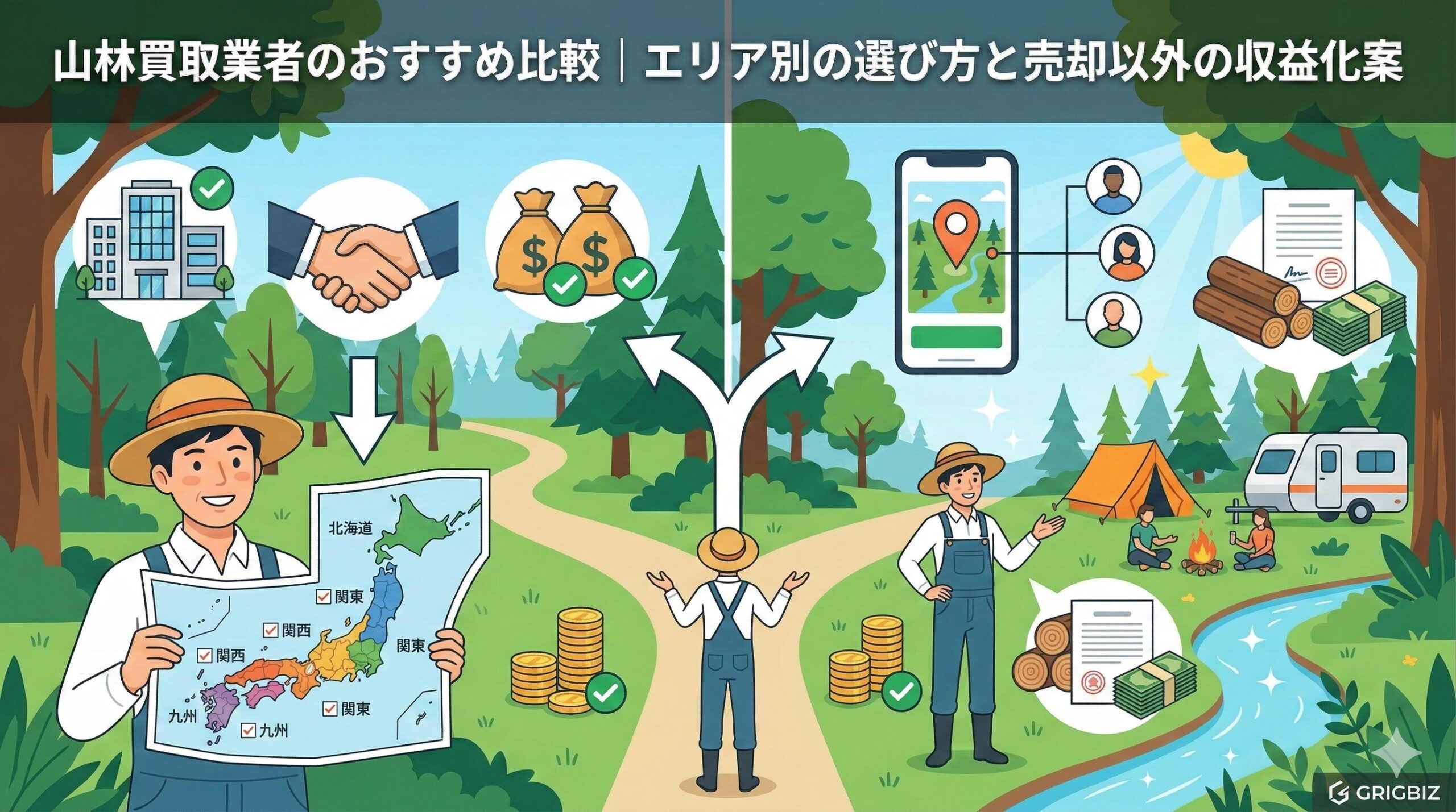 山林は地域によって需要(キャンプ、林業、投資など)が異なるため、エリアに合わせた業者選びが重要です。