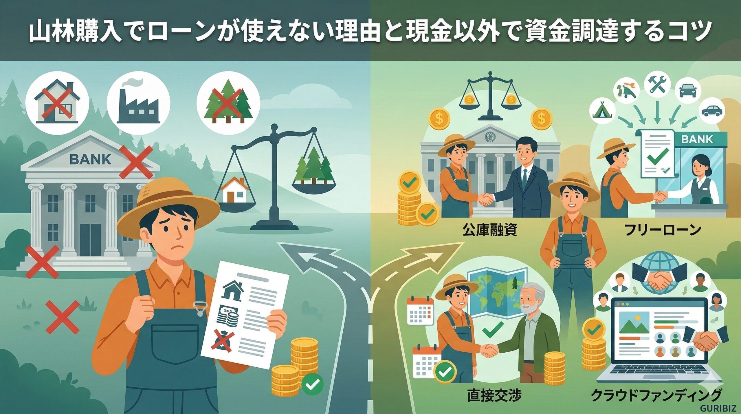 個人が趣味で買う場合にはハードルが高いですが、事業計画を立てて林業や里山再生に取り組む姿勢があれば、唯一の公的融資ルートになり得ます。