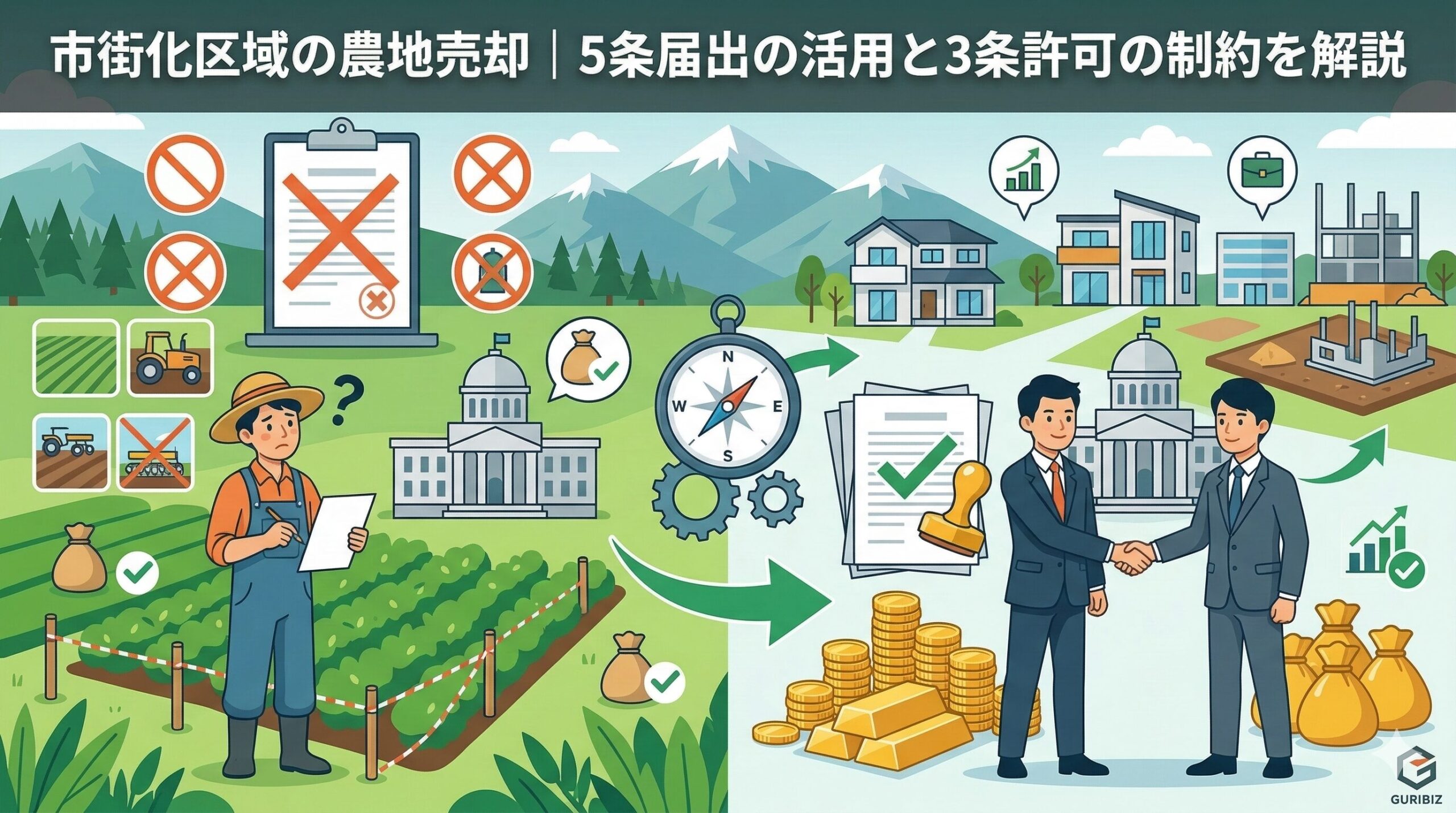 市街化区域農地の売却方法(5条届出と3条のケース別に解説)