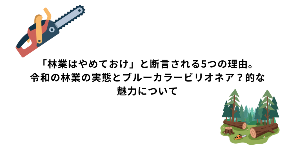 「林業はやめておけ」と断言される5つの理由。令和の林業の実態とブルーカラービリオネア?的な魅力について